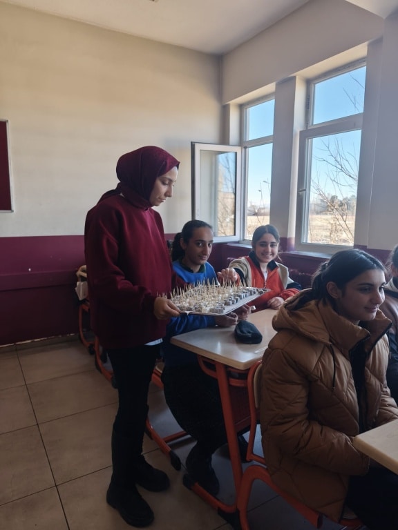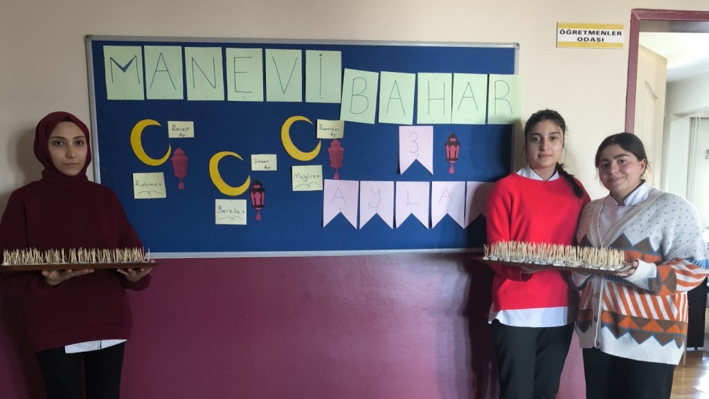 "Üç ayların başlangıcı ve Regaib kandili dolayısıyla okulumuz idarecilerinden Gülten GÖÇMEN AYDOĞAN ve Din Kültürü ve Ahlak Bilgisi Zümresi pano çalışması yapmış ve öğrencilere lokum ikramında bulunmuşlardır.